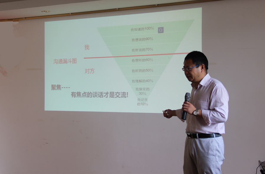 溝通是人與人之間傳遞信息、傳播思想、傳達(dá)情感的過程,正確的人際溝通和健康的心理,是我們生活與工作中重要的內(nèi)容之一。講堂上,來松海老師從人際交往的概述、為什么溝通不暢、溝通能力提升、職場(chǎng)溝通理念等幾個(gè)方面進(jìn)行了深入淺出的講解,同時(shí)又結(jié)合現(xiàn)實(shí)生活列舉了大量生動(dòng)的事例為大家傳授了許多人際溝通方面的重要知識(shí),讓員工們聽后都深受啟發(fā),受益匪淺,得到大家的強(qiáng)烈共鳴和廣泛好評(píng)。