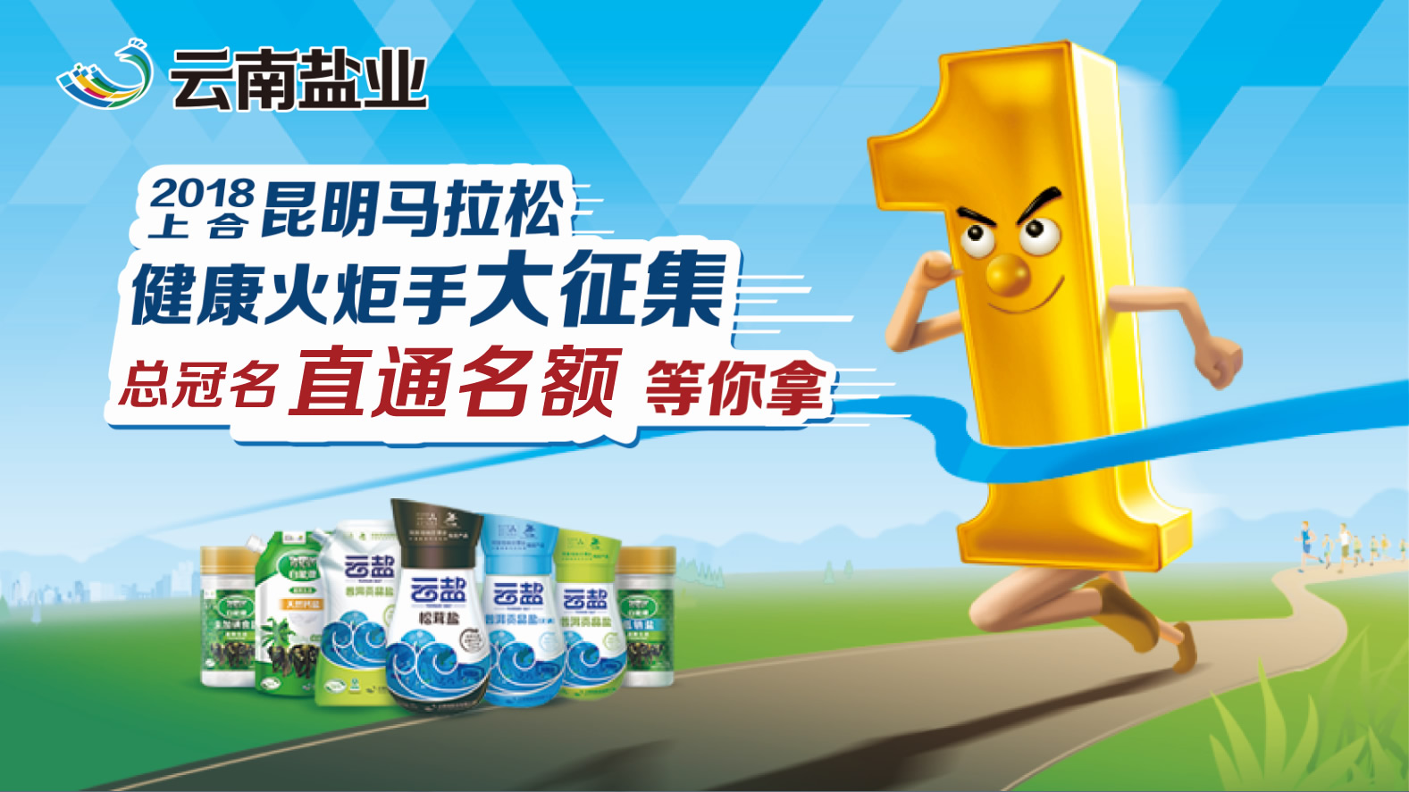 云南鹽業(yè)2017年、2018年連續(xù)獨家總冠名“上合昆明馬拉松”賽事。為了讓更多跑友參與“云南鹽業(yè)-2018上合昆明馬拉松”盛會,公司決定將200個冠名商直通名額免費提供給崇尚健康、熱愛鍛煉的人們,希望您們將這份健康的生活方式,和馬拉松積極向上、拼搏進取、永不“鹽”棄的精神火炬?zhèn)鬟f給更多的人!