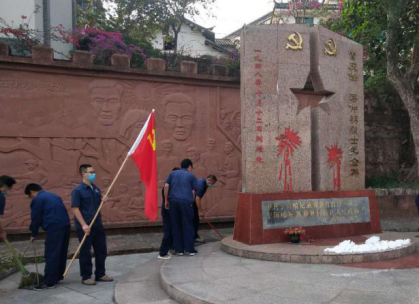 曾慶銓、蔣仲明兩位同志于1944年受中共地下黨組織的派遣,到思普地區(qū)開展革命工作,他們在磨黑中學(xué)以教書為掩護(hù),宣傳革命道理,組織秘密讀書會(huì),開展革命武裝斗爭,為邊疆的革命事業(yè)作出了重大貢獻(xiàn),1948年10月12日,兩位同志在磨黑鎮(zhèn)被國民黨反動(dòng)派殺害。為緬懷兩位同志,制鹽車間黨支部組織黨員到曾蔣老師清掃烈士紀(jì)念碑(殉難點(diǎn))開展清掃活動(dòng),他們有的用掃帚清掃地面的落葉、有的徒手清理雜草、有的用抹布把紀(jì)念碑擦拭干凈,大家團(tuán)結(jié)協(xié)作、干勁十足,經(jīng)過近三個(gè)小時(shí)的努力,紀(jì)念碑及周邊環(huán)境被清掃的干凈整潔。
